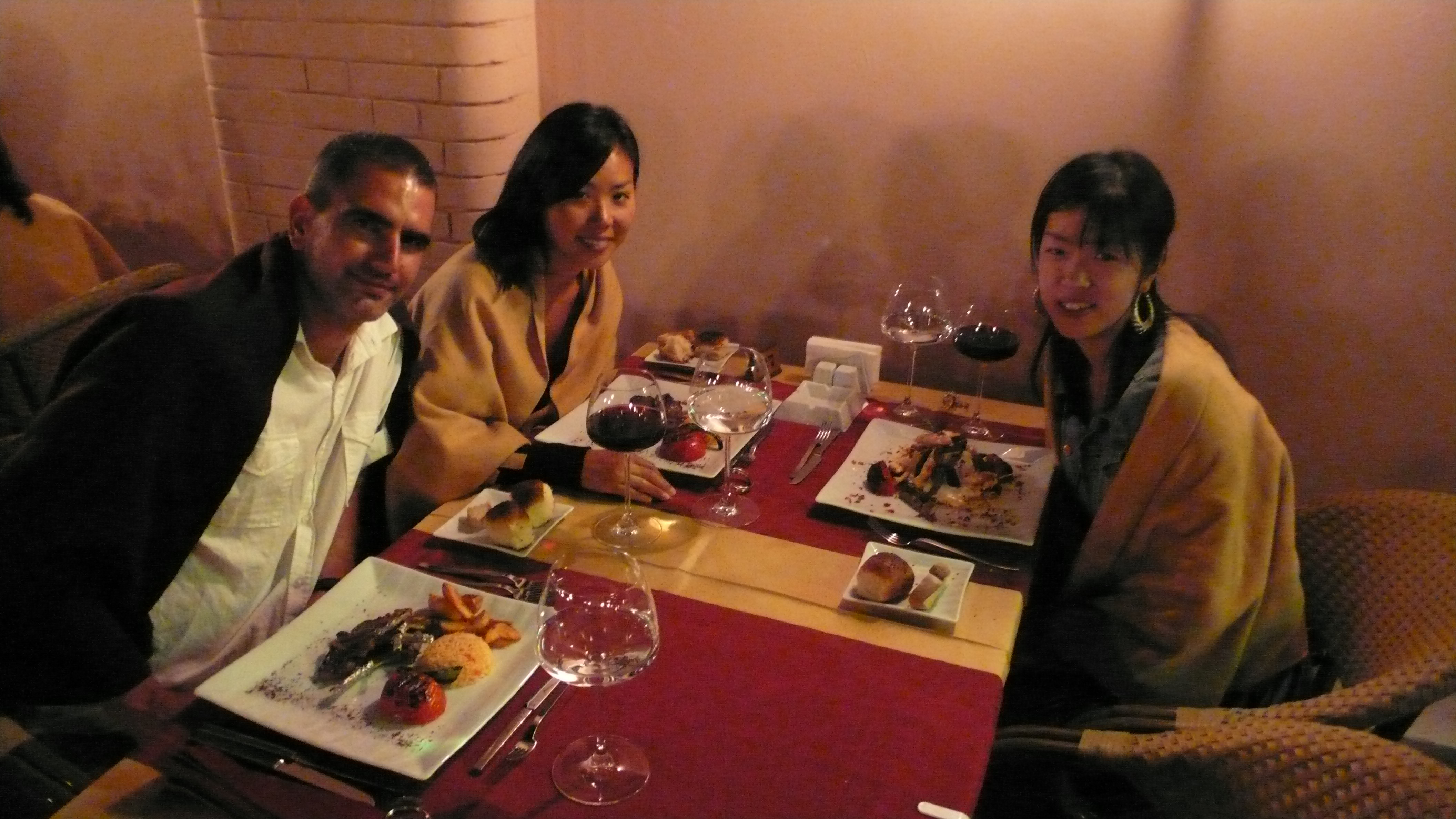 La comida estaba estupenda (yo tomé chuletas de cordero), y el precio más que razonable dada la calidad y el sitio: 58€ los 3, con bebidas y postre incluidos.