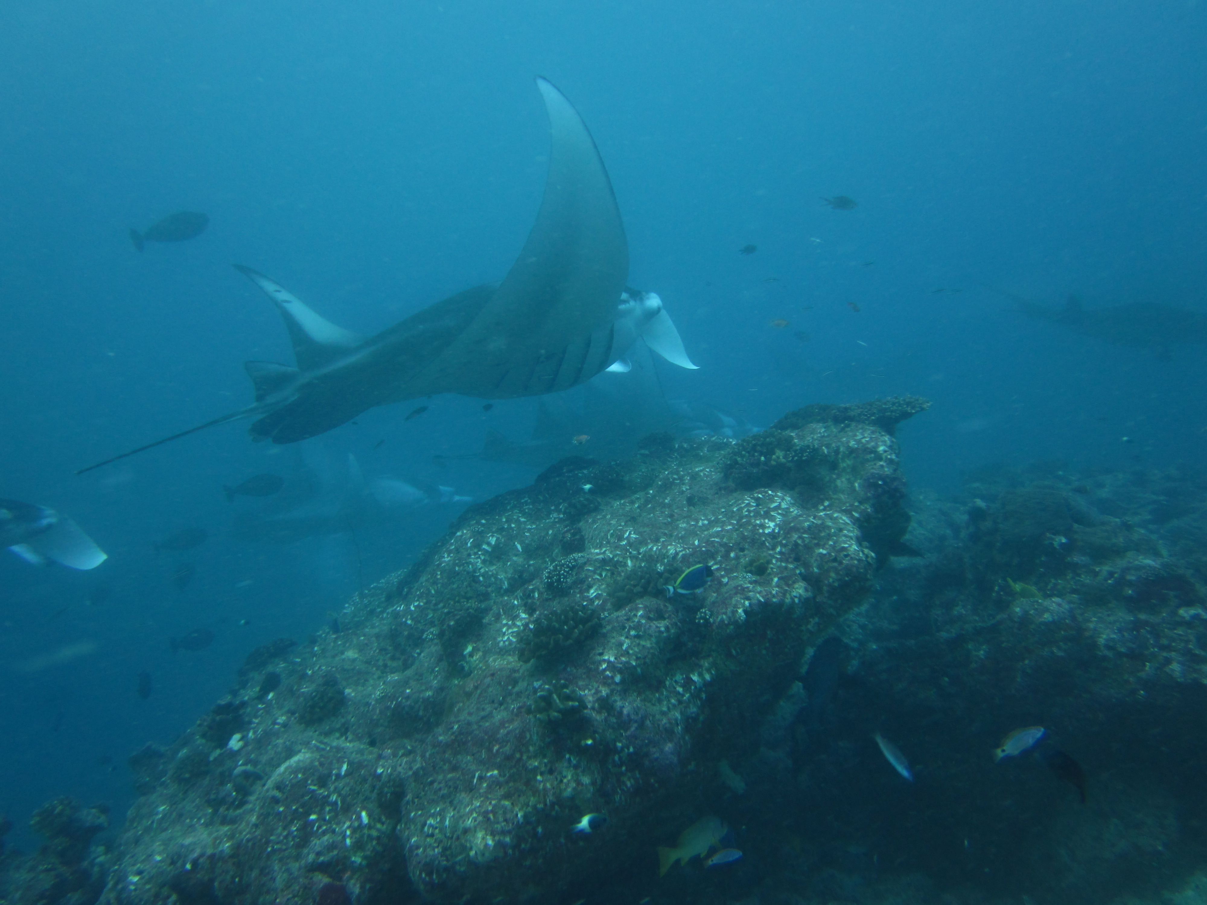 Estuvimos allí agarrados sin movernos y maravillados por el espectáculo unos 45 minutos, hasta que el aire se acabo y tuvimos que subir. Aparte de las mantas, había muchísimos otros peces y plantas en el arrecife, aunque era difícil quitar los ojos de las grandes protagonistas. A pesar de haber sido una inmersión muy pasiva me pareció fantástica, de las mejores que he hecho hasta ahora.