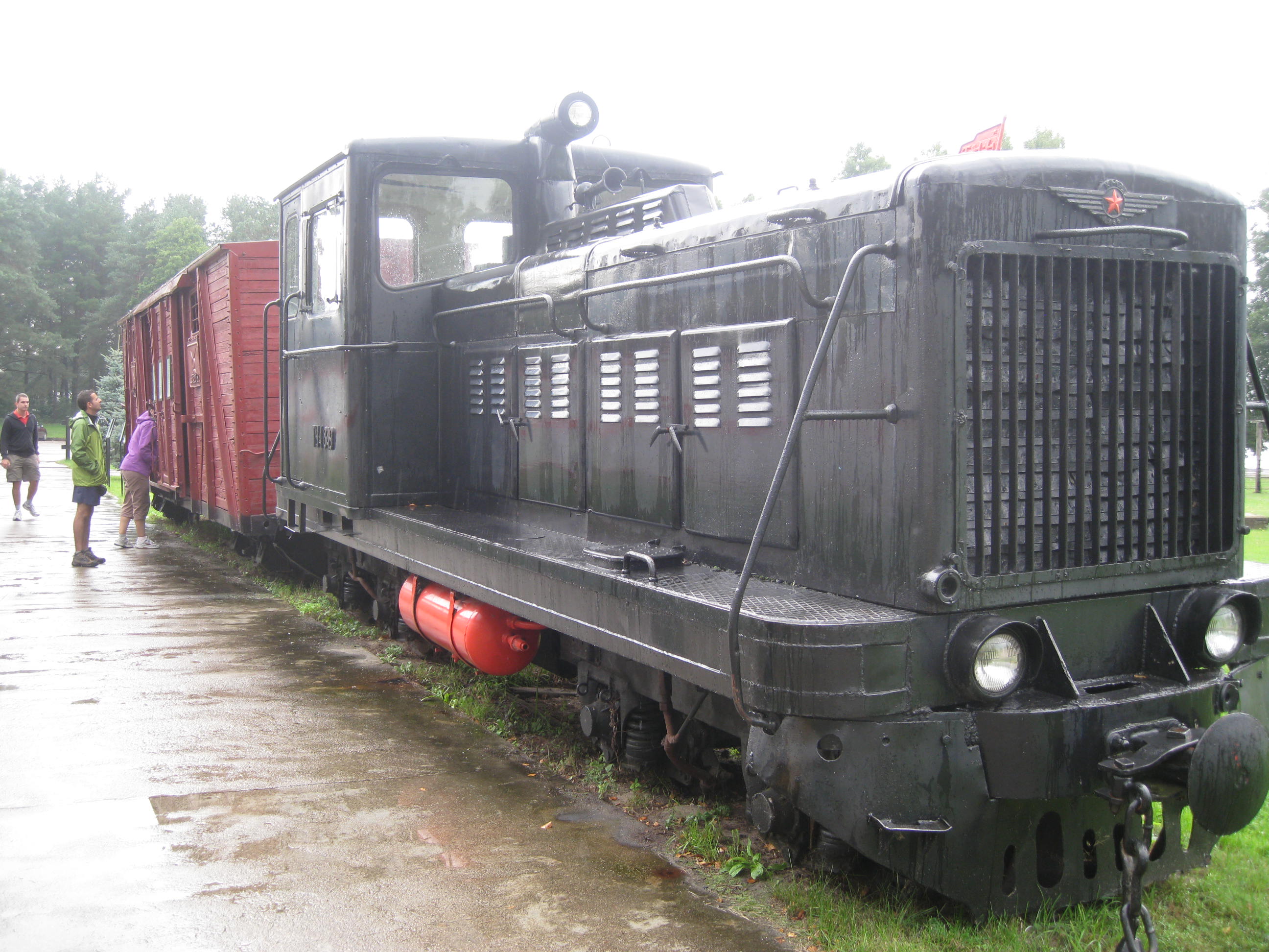 En el camino que da a la entrada al parque hay un tren como los que utilizaban para transportar a los deportados al gulag. Los vagones eran muy parecidos a los que se ven en las películas sobre el Holocausto: diseñados para transporte de ganado, hechos de madera pintada de rojo y con ventanas minúsculas y cerradas con una gruesa reja. La locomotora tenía una característica estrella roja grabada en el morro. En un principio se habían planteado hacer llegar a los visitantes en un tren como éste, pero la férrea oposición de organizaciones de supervivientes del gulag lo evitaron. Era ir demasiado lejos.