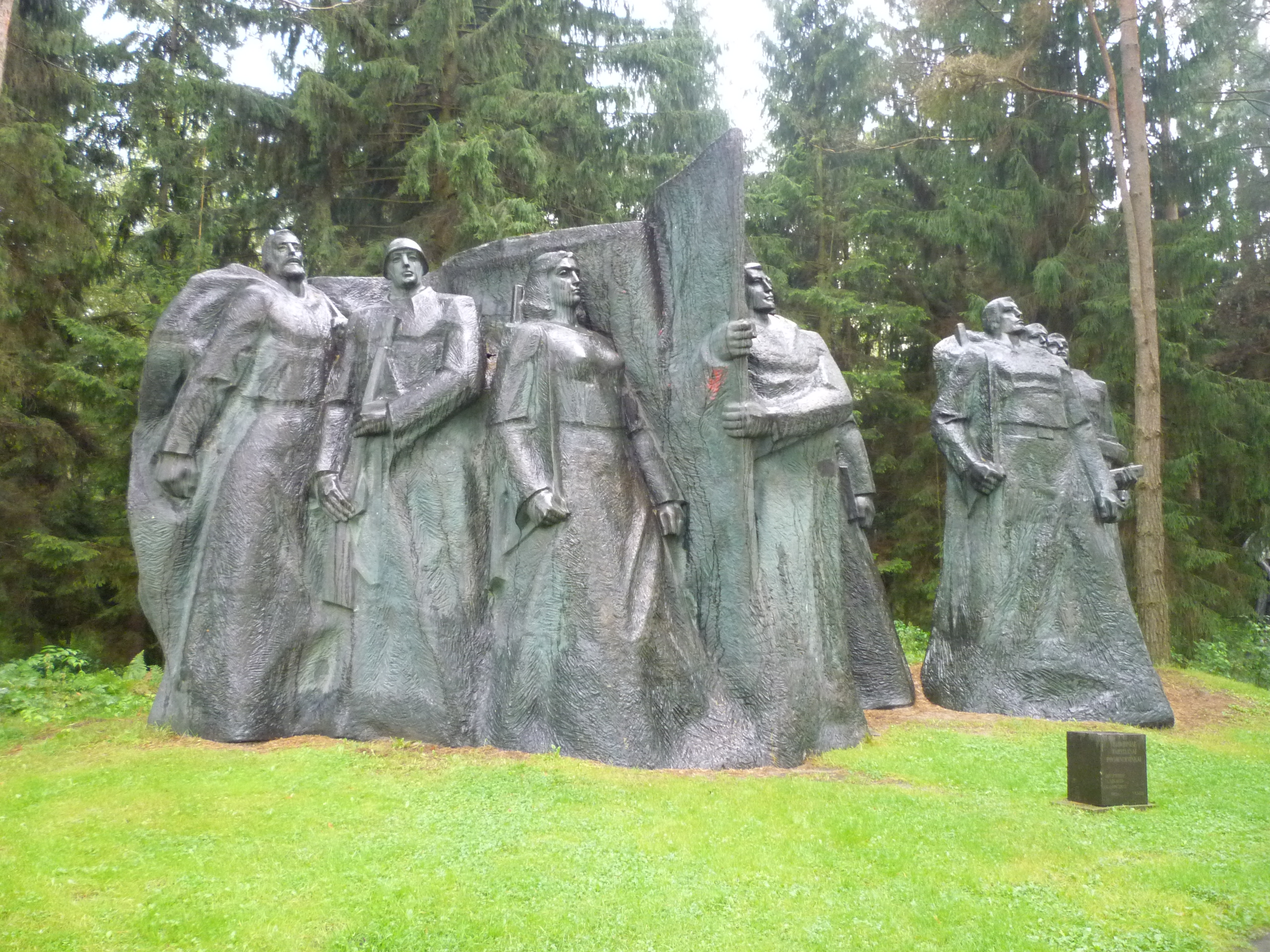 Grūtas Parkas es bastante diferente a lo que imaginaba. Muchísimo más grande (cubre 20 hectáreas), bien montado e interesante que el “puñado de estatuas medio oxidadas arrambladas en una esquina” que yo esperaba. Además de diversas estatuas y bustos de Lenin, Stalin o Marx (las más repetidas), también hay grupos escultóricos representando idealizaciones de valores comunistas: estoicos soldados, trabajadores de aspecto incansable o mujeres con aire adusto y marcial representando la Victoria o el esfuerzo proletario (por ejemplo una enorme de Madre Kryzhkalnis, supuestamente simbolizando al Ejército Rojo que trajo la liberación del nacionalismo burgués).