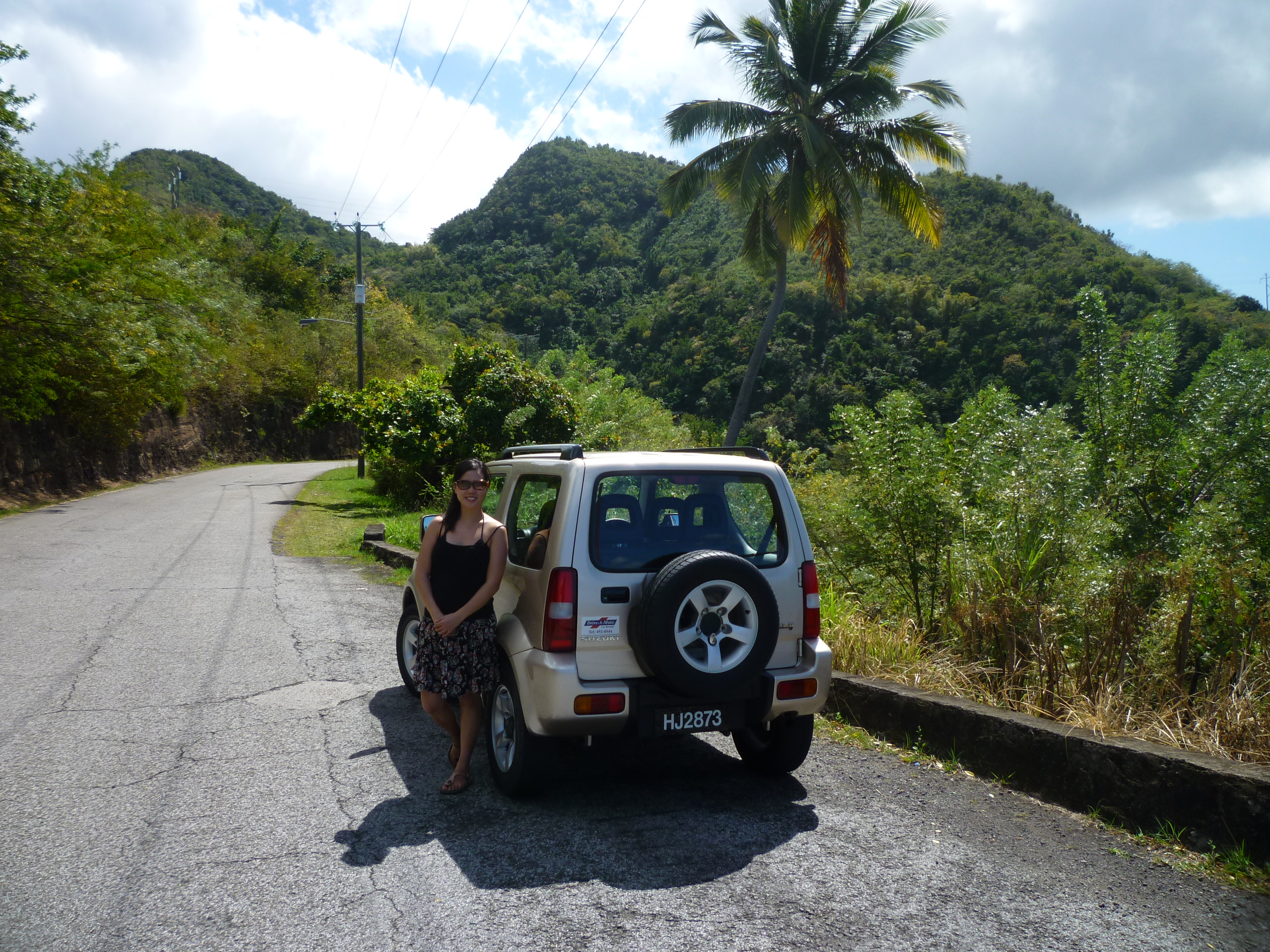 Coche de alquiler y conducir en Santa Lucía: miramos en un par de compañías en la zona de Rodney Bay y acabamos alquilando con Drive-a-matic a través de la representante de Trailfinders. Los precios eran prácticamente idénticos en todas las compañías. Nos dieron un Suzuki Jimny automático bastante nuevo y en muy buen estado.