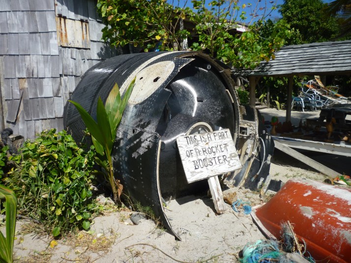 Desde Rodney Bay se puede ir en poco tiempo (media hora con coche alquilado) a Cas en Bas, una de las playas de la costa Este de la isla, la que da al Atlántico. Hay algún resort y alguna que otra urbanización pero en general está bastante más despoblado que la parte caribeña y da una sensación bastante distinta, más salvaje y expuesta. Hacia muchísimo viento a pesar de que en la zona de Rodney Bay se estaba de maravilla. La playa tiene forma de arco suave, es bastante grande y estaba prácticamente vacía. La mayoría de la gente estaba practicando deportes acuáticos, sobre todo kite-surfing y windsurfing, aunque también vimos a gente paseando a caballo. Apenas había gente dentro del agua, pero te podías bañar bien porque la bahía está bastante protegida y no hay corrientes fuertes. Hay un chiringuito de madera grande donde sirven comidas y bebidas, aparte de tener expuesto una de las fases de un cohete espacial que debió caer cerca.