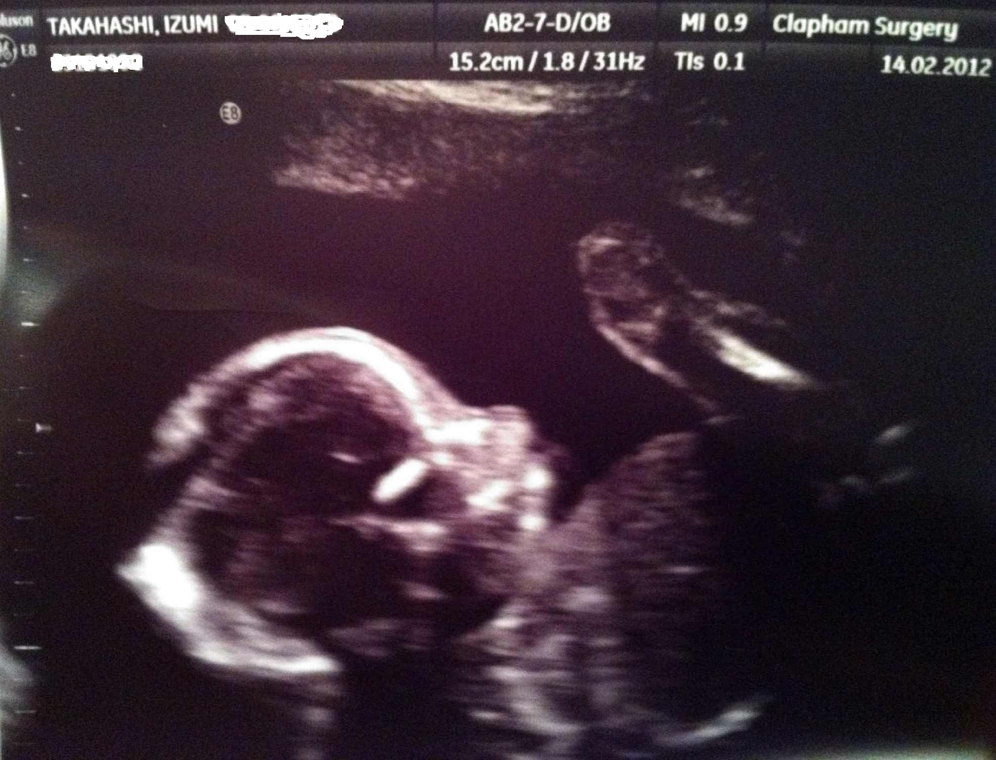 La siguiente cita, el 14 de Febrero, fue otro de los momentos clave del embarazo: el scan de las 20 semanas (21 en nuestro caso) en el que te dicen (si quieres) si es niño o niña. Esta vez fue en la clínica local de Clapham en lugar de el hospital. Sakura ya estaba mucho más hecha (medía ya 15 centímetros) y fue muy bonito poder ver como había crecido. La médico que nos tocó era de pocas palabras y sólo nos dijo que era niña y poco más. A nuestras preguntas de si todo estaba bien respondía con monosílabos desganados, pero nos confirmó que no había ningún problema y con eso nos llegó.