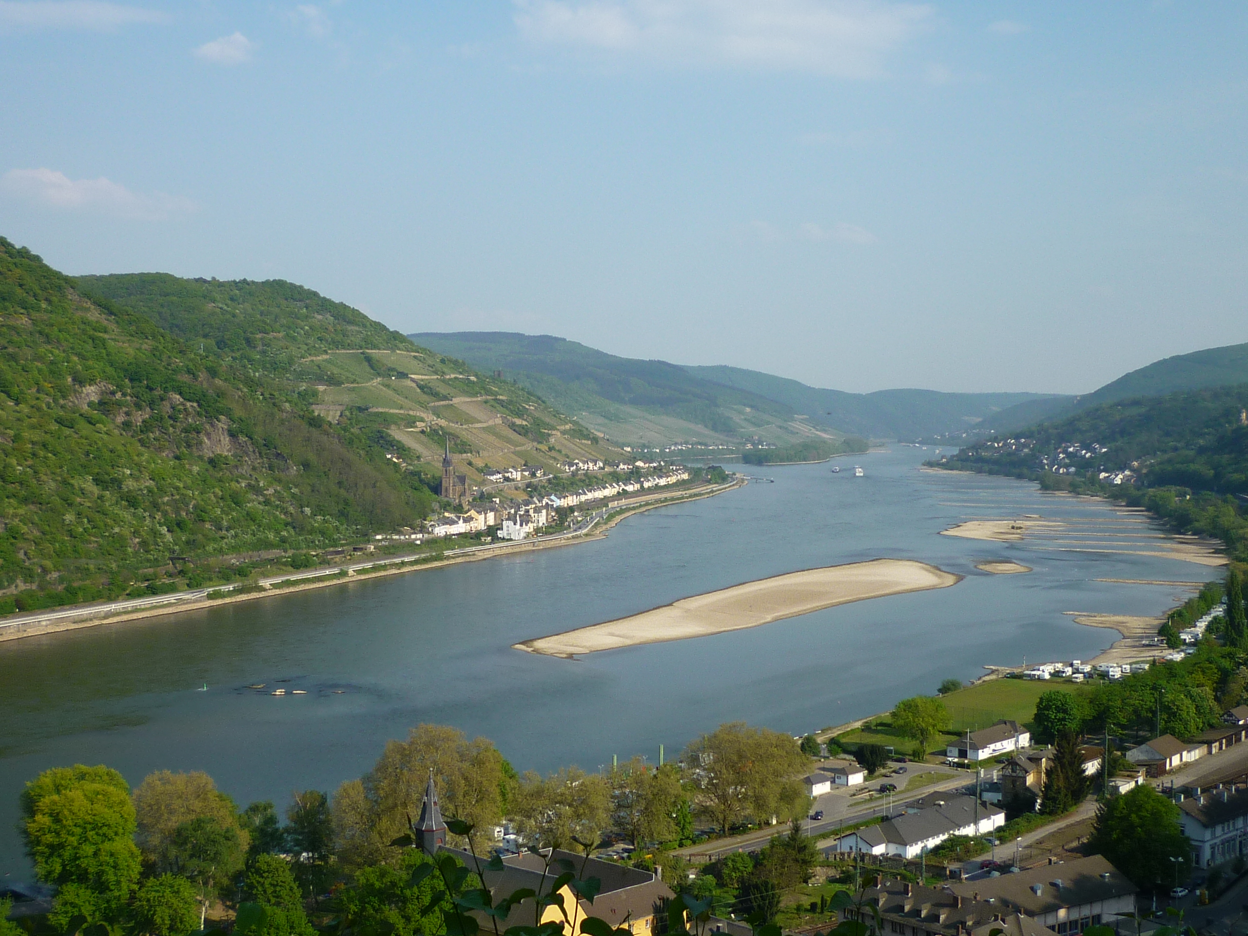 Boppard es parada obligatoria en la visita al Rin Romántico y fue el sitio que elegimos para pasar la noche. Con 15000 habitantes es el pueblo más grande hasta llegar a Bingen y está a unos 20 Km de Coblenza. Aparte de ser muy bonito (un ejemplo perfecto de encantador pueblo alemán) está en la parte en la que el rio hace su giro más brusco de todo su curso, formando una herradura. Hay bastantes cosas que ver: la calle principal (Oberstrasse) llena de casas típicas con vigas de madera en la fachada, la marksplatz en la que aún hay día de mercado, un par de iglesias bonitas y un trozo de muralla romana, con lo que se puede pasar recorriéndolo medio día sin aburrirse. Una actividad muy popular (aunque nosotros no la hicimos) es subir en el sesselbanh (telesillas) al llamado “punto de los 4 lagos” desde el que las montañas no dejan ver más que 4 parches de agua del Rin y parece que en realidad estás viendo lagos no conectados. Nos quedamos a dormir en el Hotel Sonnenhof por 55€. Bonito, limpio y con buen desayuno. Recomendable