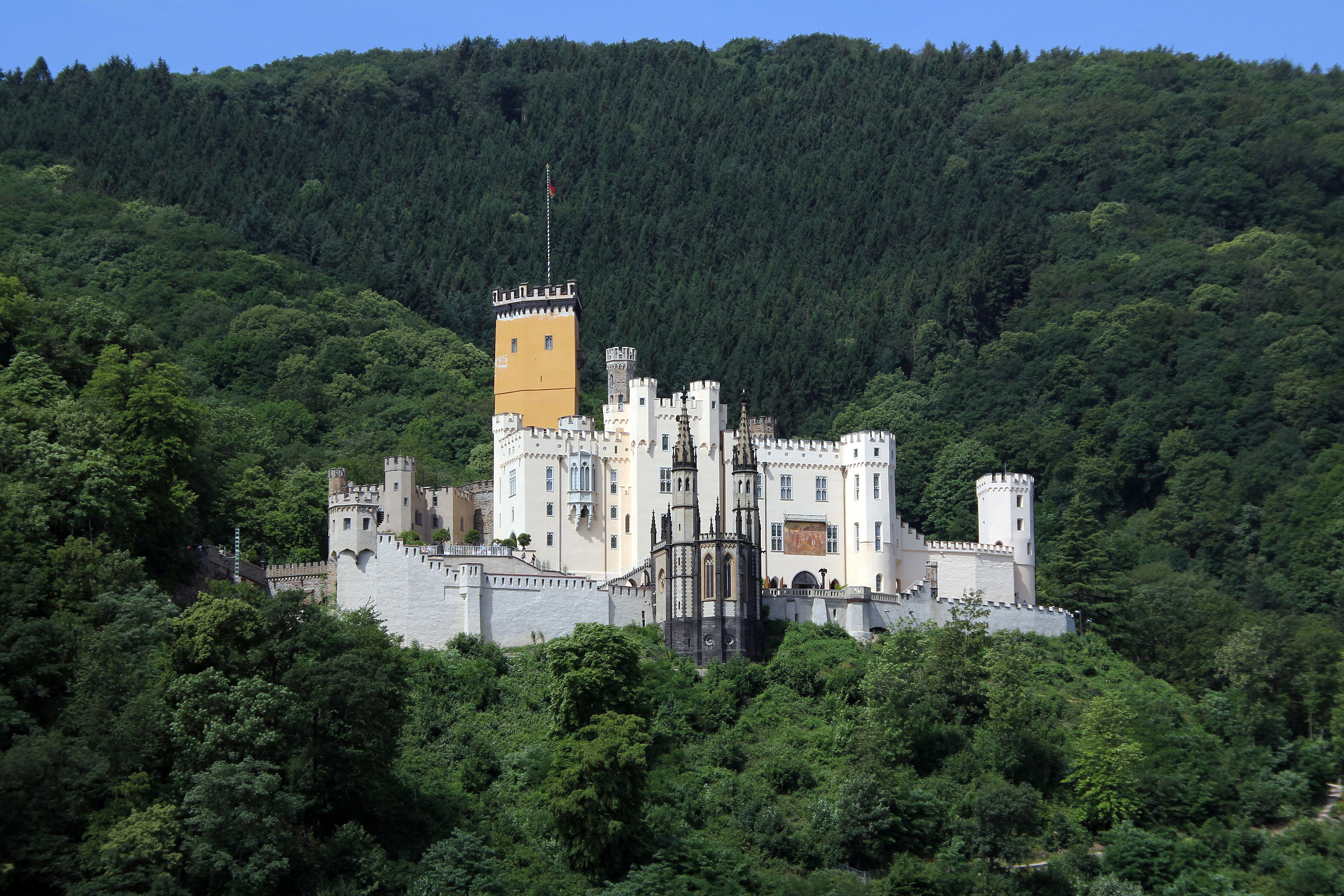 Una vez dejas Coblenza para empezar la ruta propiamente dicha bajando por la carretera nacional número 9, a apenas 8 kilómetros te encuentras con el imponente castillo Stolzenfels. Construido en 1259, fue destruido 4 siglos más tarde y abandonado durante 150 años. En 1823 la ciudad de Coblenza le regala las ruinas del castillo al príncipe (y futuro rey) Federico Guillermo IV de Prusia, que decide reconstruirlo y le da su actual aspecto (prusiano-romántico según el folleto) en 1847.