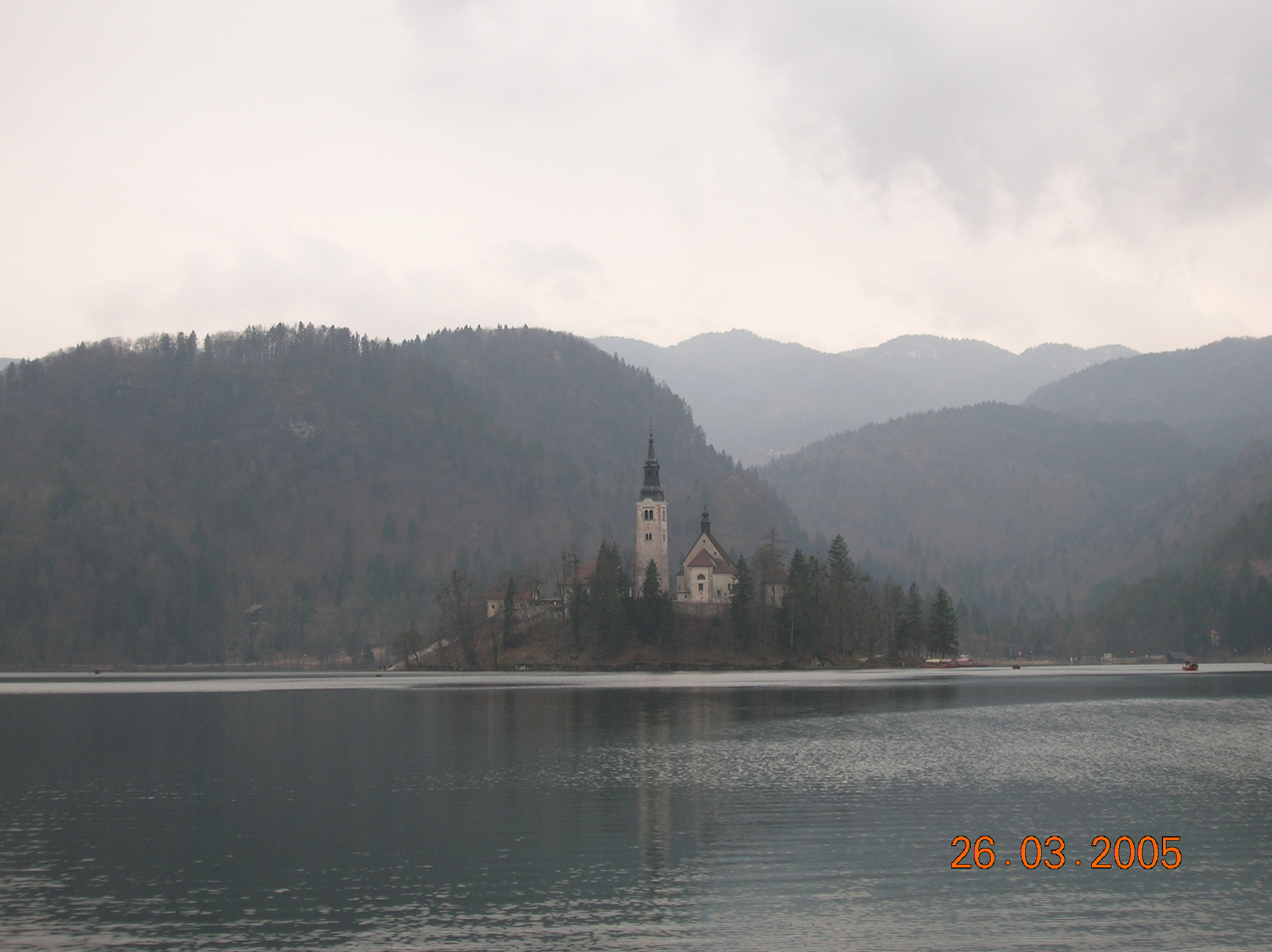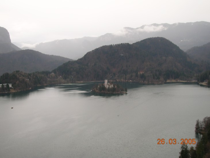 2.- EL LAGO BLED: la joya de la corona del turismo esloveno y el lugar del país que atrae más turistas. Está a unos 55 Km de Ljubjana hacia el noroeste, en las estribaciones de los Alpes Julianos. Uno de los lugares-postal tipo cuento de hadas más perfectos que he visto. El lago tiene una isla con una pequeña iglesia en el centro, un castillo colgando de una pared vertical de más de 100 metros, frondosos bosques rodeándolo y los picos nevados de los mencionados Alpes Julianos de fondo. Un panorama de ensueño y enormemente fotogénico.