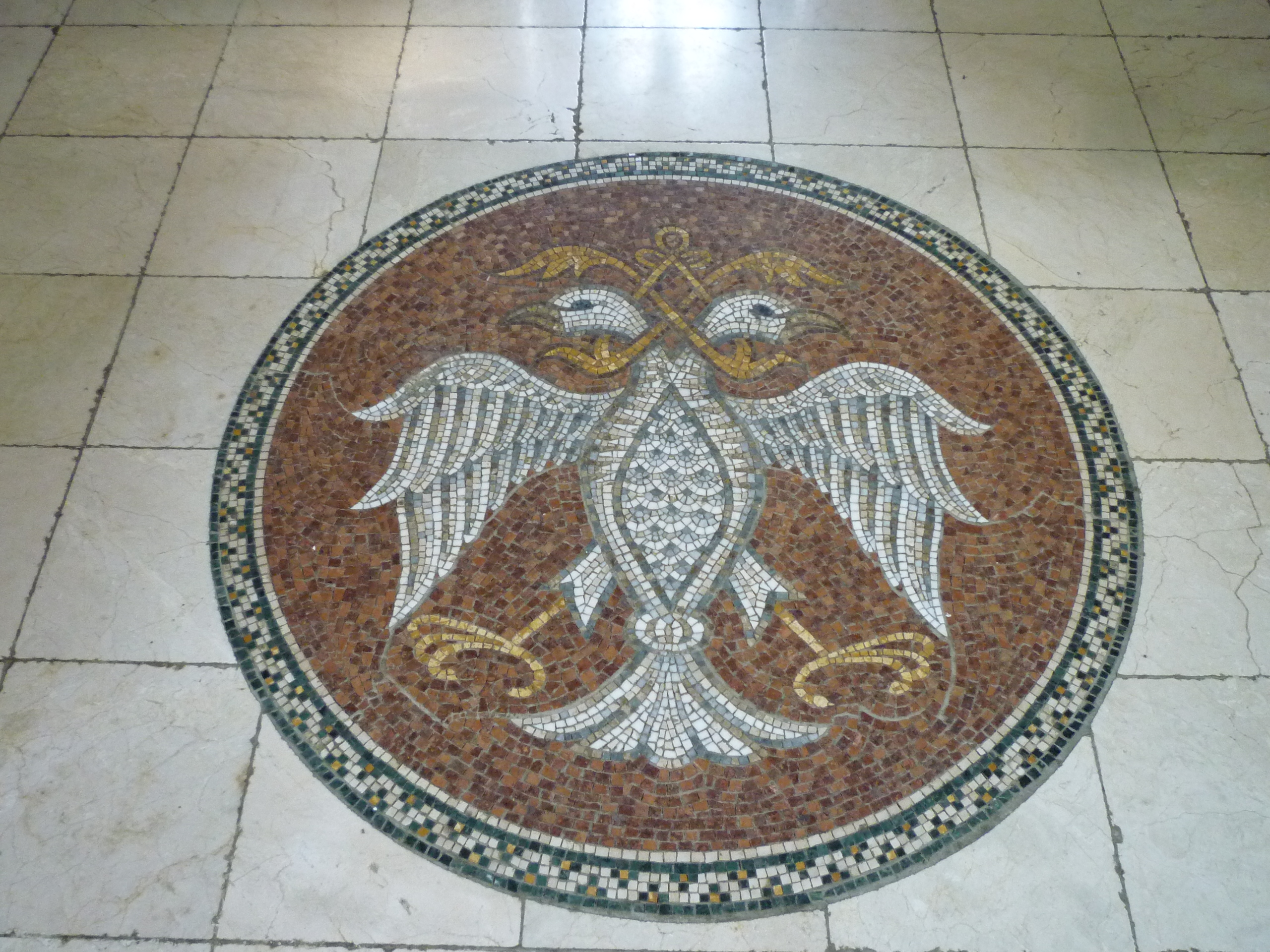 Mosaico con el escudo de Serbia en Staro Hopobo