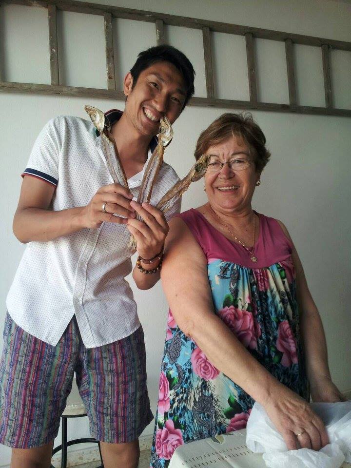 Genya con su suegra y unas bacaladillas que pasaban por allí