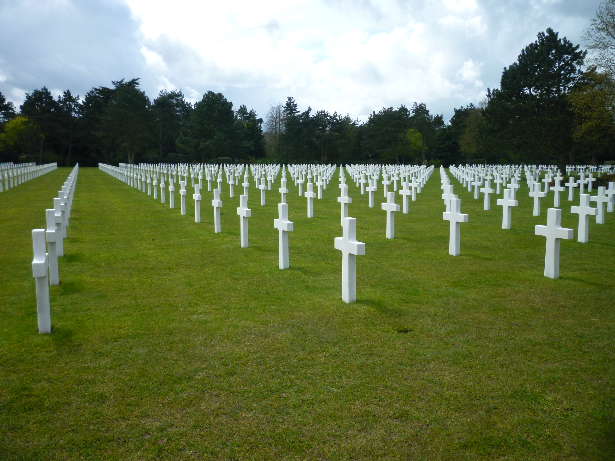 Junto a Colleville-Sur-Mer y en la cima del acantilado que domina Omaha Beach, se levanta el impresionante Cementerio Americano de Normandía. Ocupa casi 70 hectáreas, donadas a perpetuidad por el gobierno francés como muestra de agradecimiento, y en el reposan los restos de 9387 soldados estadounidenses.