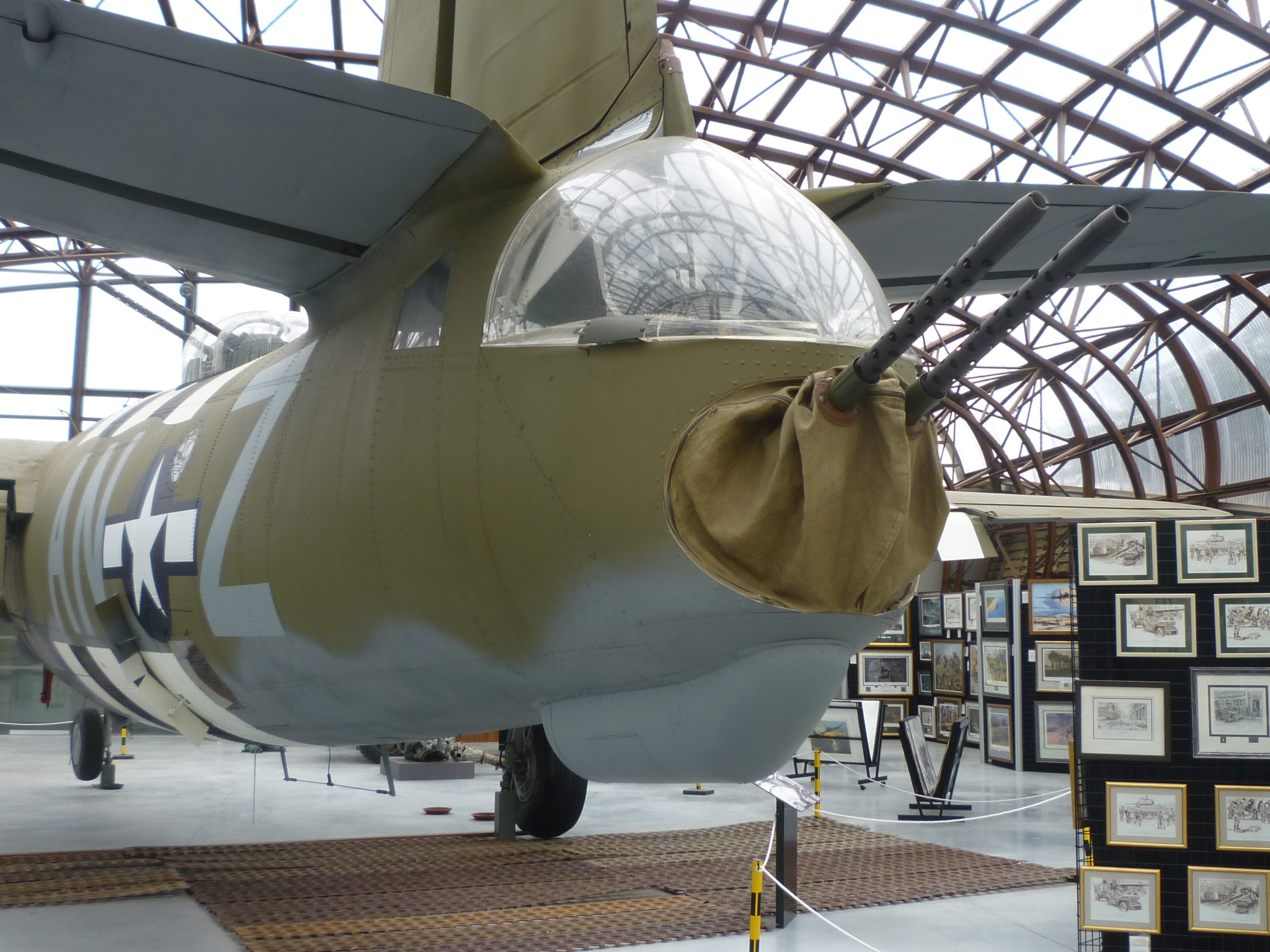 La exposición es interesantísima. Desde pequeños objetos personales acompañados de historias de los soldados, hasta vehículos que tomaron parte en la invasión: lanchas de desembarco, vehículos anfibios, camiones, jeeps y tanques. Pero la joya de la corona es un inmaculado B-26 Marauder (uno de los únicos 6 que quedan en todo el mundo) que descansa en un elegante hangar construido para la ocasión.