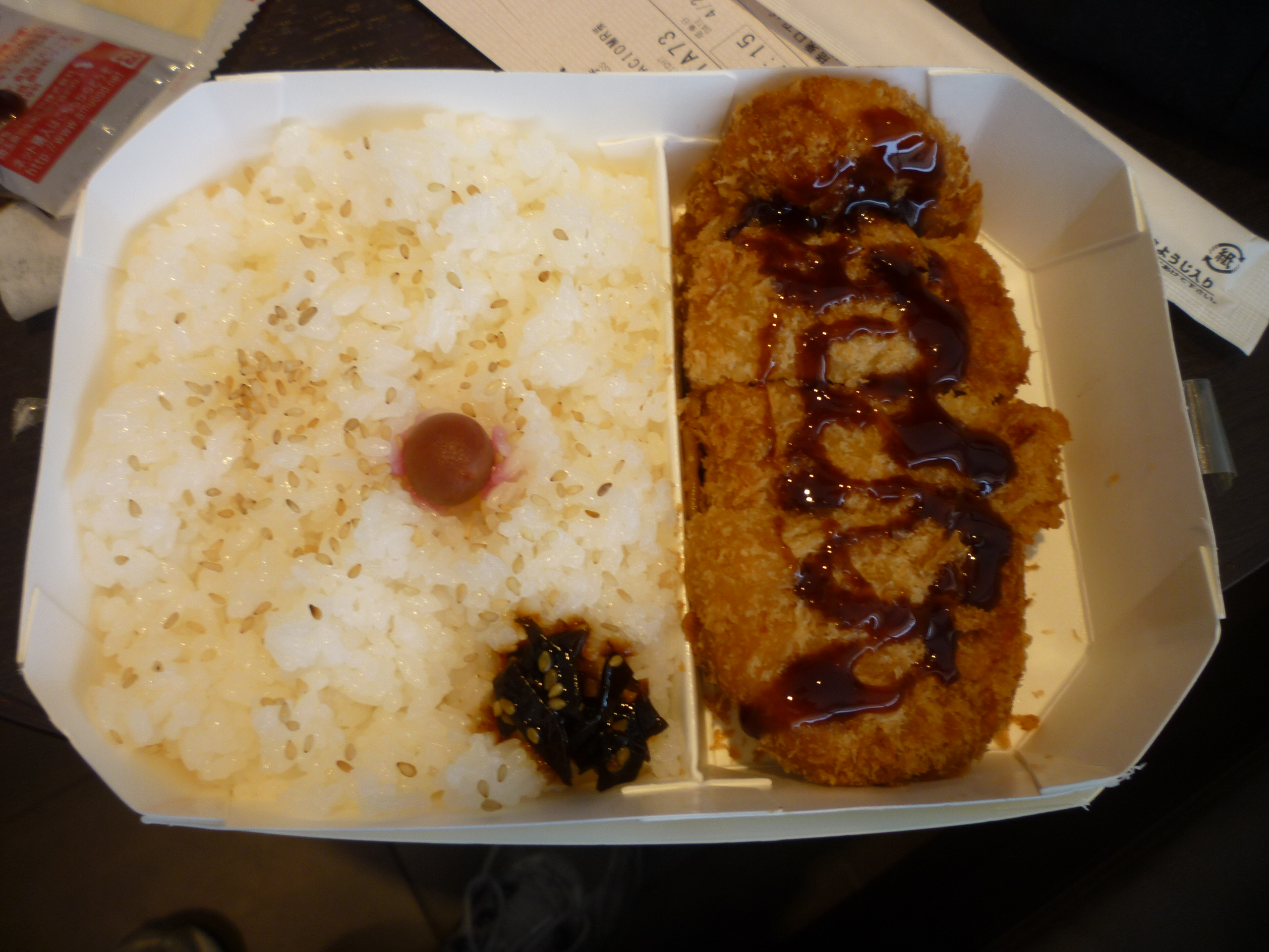 – Tonkatsu (とんかつ): una chuleta de cerdo empanada, frita y troceada. Se suele servir con repollo rallado y una salsa espesa y oscura también llamada tonkatsu. El katsudon es un plato muy típico que consiste en un cuenco grande de arroz con tonkatsu y huevo por encima.