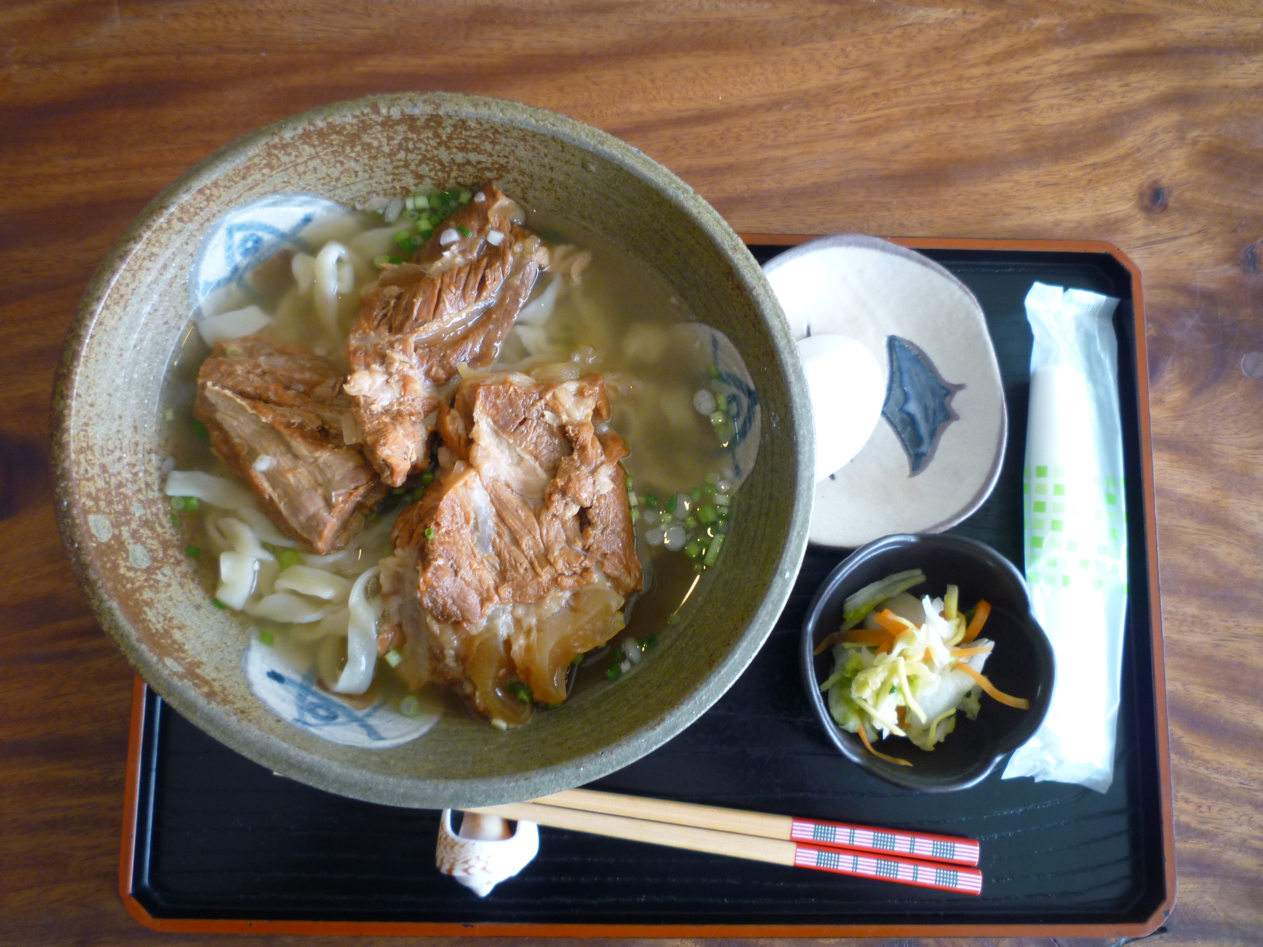 – Yakisoba (焼きそば): es un plato que se prepara pasando por la plancha el mismo tipo de fideos que usan para el ramen, al que se le añade carne de cerdo o pollo, cebolla, zanahoria y repollo. Una vez listo se espolvorea (o no, al gusto) con algas ralladas, virutas de pescado, condimentos o mayonesa.