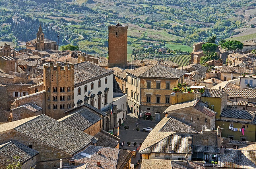 Encaramada en lo alto de una imponente roca volcánica con paredes verticales cortadas a cuchillo, he visto pocas ciudades en Europa capaces de producir una primera impresión parecida. Poblada desde tiempos prehistóricos, Orvieto (urbs vetus – ciudad antigua), fue una importante ciudad etrusca. Los romanos, inquietos porque estaba en un lugar casi inexpugnable, la saquearon y obligaron a sus habitantes a abandonarla. La caída del Imperio hizo que los habitantes volvieran poco a poco a la antigua ciudad, cuya privilegiada posición volvió a darle relevancia en la Edad Media. Bajo el patronazgo de los Papas, su época de esplendor fue en los siglos XIII y XIV, en la que dominaba vastos territorios en la zona y fecha de construcción de los principales palazzos y monumentos. En 1450 pasó a formar parte de los Estados Pontificios y, en 1860, del recién creado Reino de Italia.