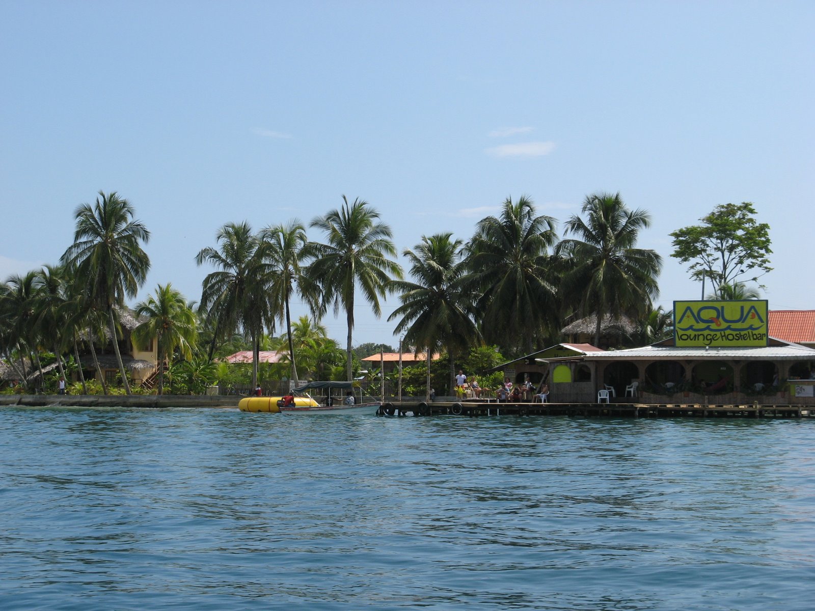 – Nos vamos a tomar algo a lo que parece ser el centro neurálgico de la diversión en la isla: el bar Aqua Lounge. A pesar de que ninguno de los dos llegamos a los 40 (y mi mujer más cerca de los 30), subíamos la media de edad del local dramáticamente. Mucho surfero (o aprendiz de) de veintipocos, música de Marley y ambiente de vacaciones escolares. Pero la terraza es estupenda, la cerveza vale $1 la botella y la puesta de sol con Bocas de fondo lo compensa todo.