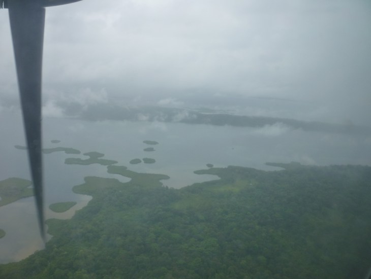 – Los despegues en aviones de hélice son una experiencia muy distinta a los reactores. Todo es mucho más suave y parece que se elevan sin esfuerzo. Sobrevolamos el Canal y desde el aire Panamá es una gran masa verde. A pesar de las muchas y densas nubes, el vuelo es muy tranquilo y los 50 minutos se pasan rápidos. Al llegar resulta que el equipaje de Izumi se ha quedado en Ciudad de Panamá por exceso de peso (del equipaje, no de Izumi). Nos dicen que lo traerán en el siguiente y (¡atención spoiler!) lo cumplen.