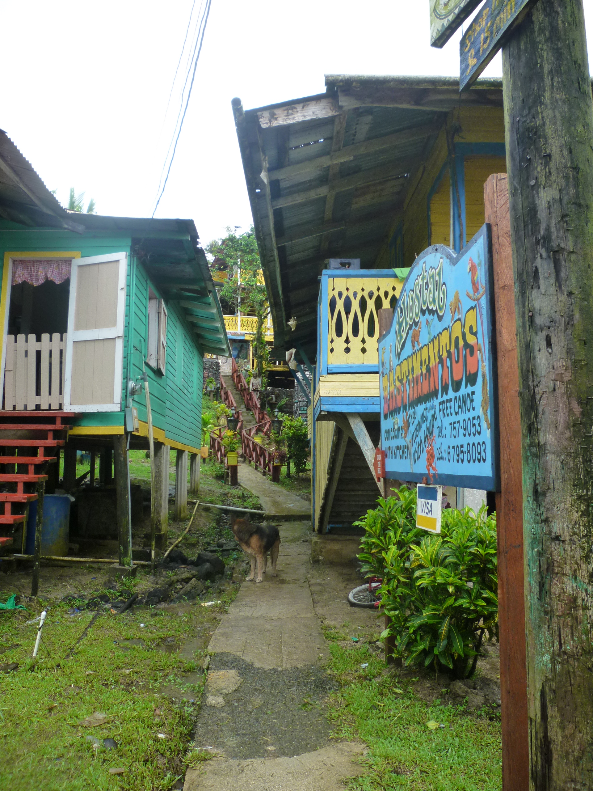 – El ambiente en Carenero es muy distinto. Más remoto, no hay realmente un núcleo urbano definido, sólo casas, restaurantes y hostales a ambos lados del único camino, bastante estrecho a veces. Nada de carreteras ni vehículos a motor (al menos yo no recuerdo ninguno), la mayor parte de la isla está cubierta por la vegetación. Justo lo que íbamos buscando, aunque el diluvio de la noche anterior no le ha sentado bien: está todo inundado y salpicado de basura arrastrada por el viento y el agua.