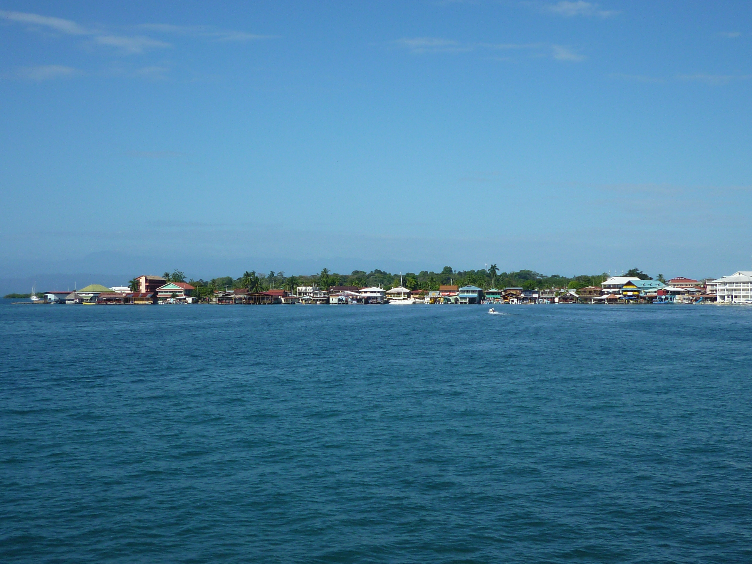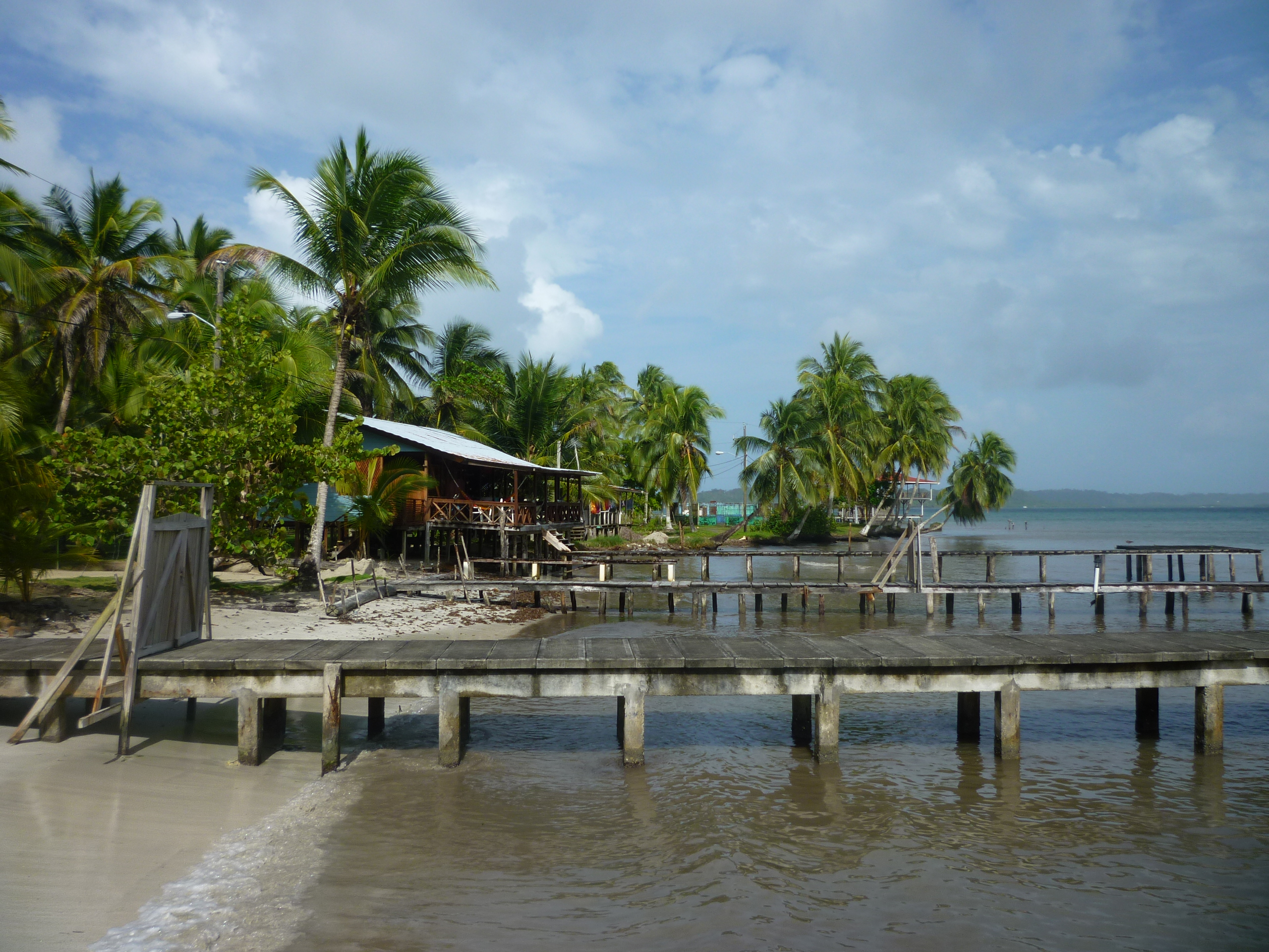 – La primera impresión del pueblo de Bocas del Toro (me cuesta mucho llamarlo Bocas Town como hacen los anglosajones) es francamente buena. Atmósfera caribeña relajada pero a la vez un toque menos caótico que otros sitios del Caribe: el plano de la ciudad es una cuadrícula con avenidas (este-oeste) y calles (norte-sur). Y por supuesto casas de madera de diferentes colores, porches amplios, barandillas y terrazas. Ambiente turístico pero sin que eso sea un problema. También quizás algo más grande de lo que me lo esperaba.