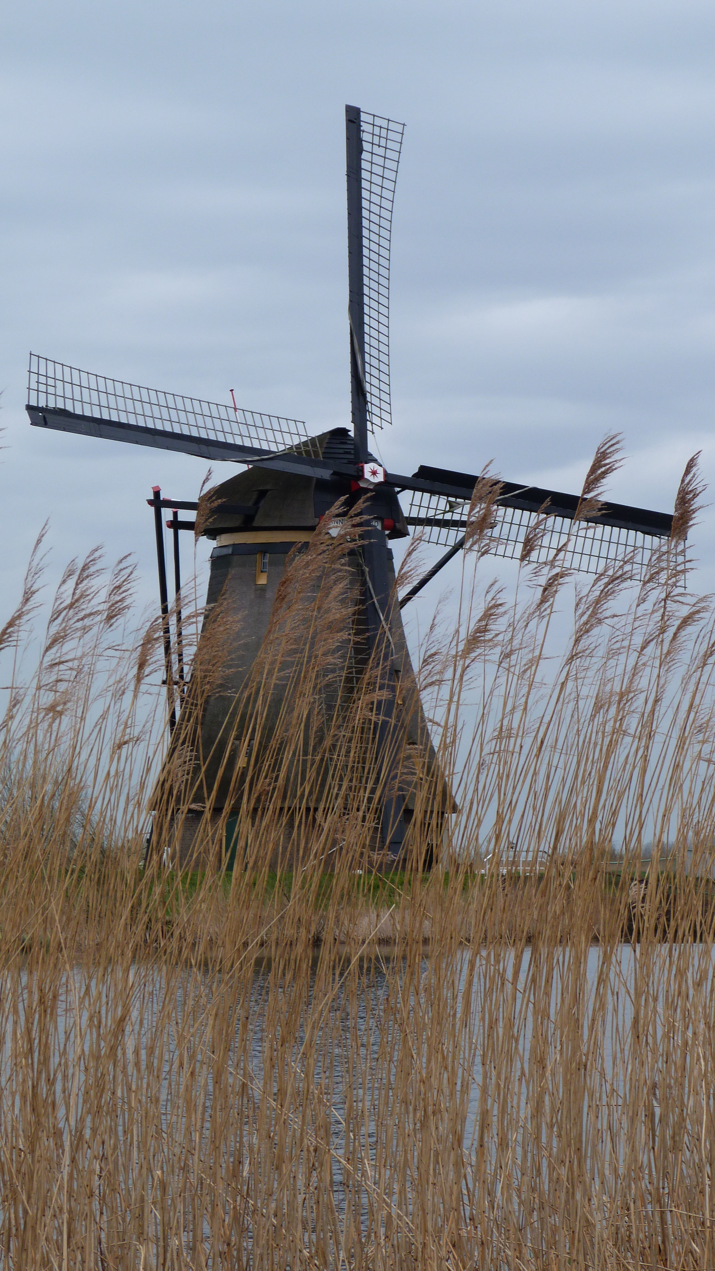 Pero también hay diferencias apreciables. Los molinos de Nederwaard (construidos en 1740) son de ladrillo y su cuerpo es cilíndrico. Al estar muy cerca unos de otros, no guardan una alineación perfecta para no robarse el viento unos a otros. Los de Overwaard, de 1738, son de madera y tienen planta octogonal. Al estar más separados entre sí no hay problema en que estén alineados perfectamente.