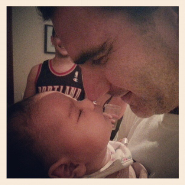 Llegado ese momento, Sakura había perdido casi un 15% de su peso al nacer, lo cual es por encima de lo habitual (se considera normal hasta un 10%). Estuvimos todos de acuerdo (aunque yo insistí mucho, por si acaso) en compaginar biberón y pecho durante un tiempo para quedarnos tranquilos sabiendo que Sakura estaba tomando todo el alimento que necesitaba. Los efectos fueron inmediatos y empezó a ganar peso a ojos vista. Además, al poder ayudar yo a darle la comida, permitía a Izumi recuperarse del cansancio acumulado de los primeros días. El primer mes de lactancia se le hizo muy duro y estuvo a punto de dejarlo varias veces, pero al final decidió seguir y a partir de las 5 semanas le resultó  bastante más sencillo.