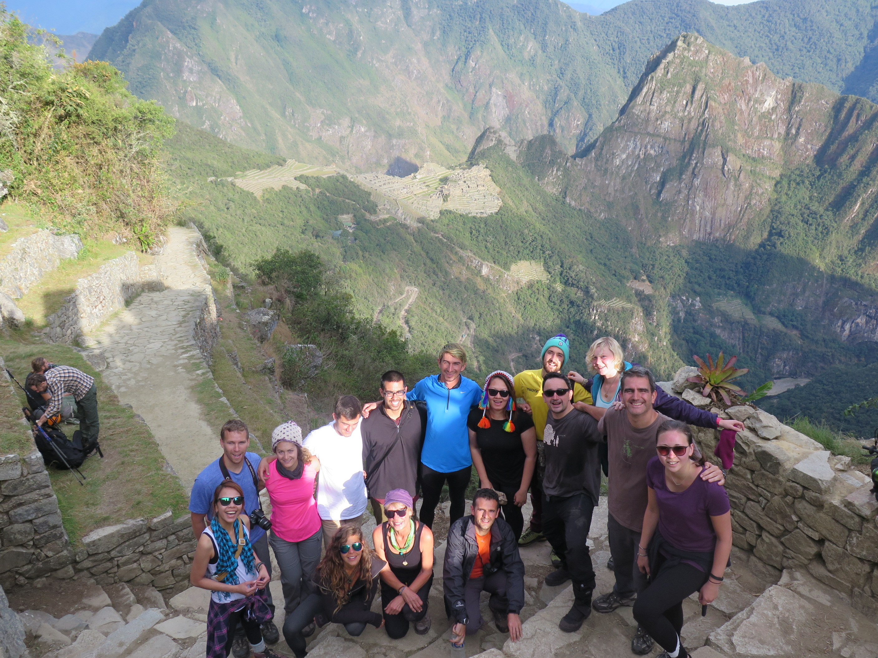 Finalmente llegamos a la famosa Puerta del Sol (Inti Punku, 2700 metros de altitud) a las 6:45. Las 3 ó 4 personas a las que les había costado más seguir el ritmo llegaron frustradas y algo cabreadas (personalmente creo que no había necesidad de ir tan rápido), pero las vistas y la emoción del momento lo arreglaron todo casi instantáneamente. Los primeros minutos fueron de abrazos, felicitaciones y, por supuesto, muchas fotos.