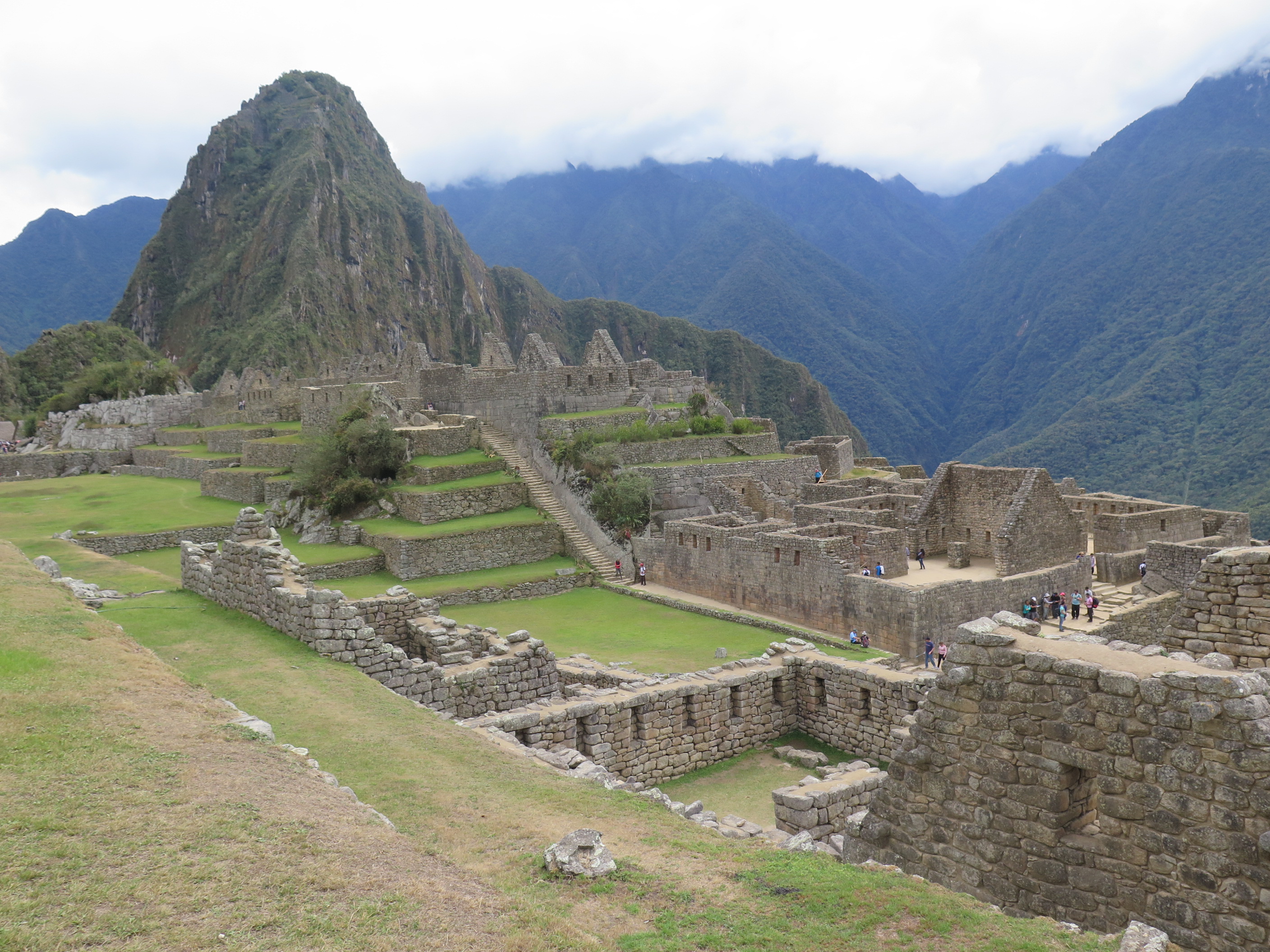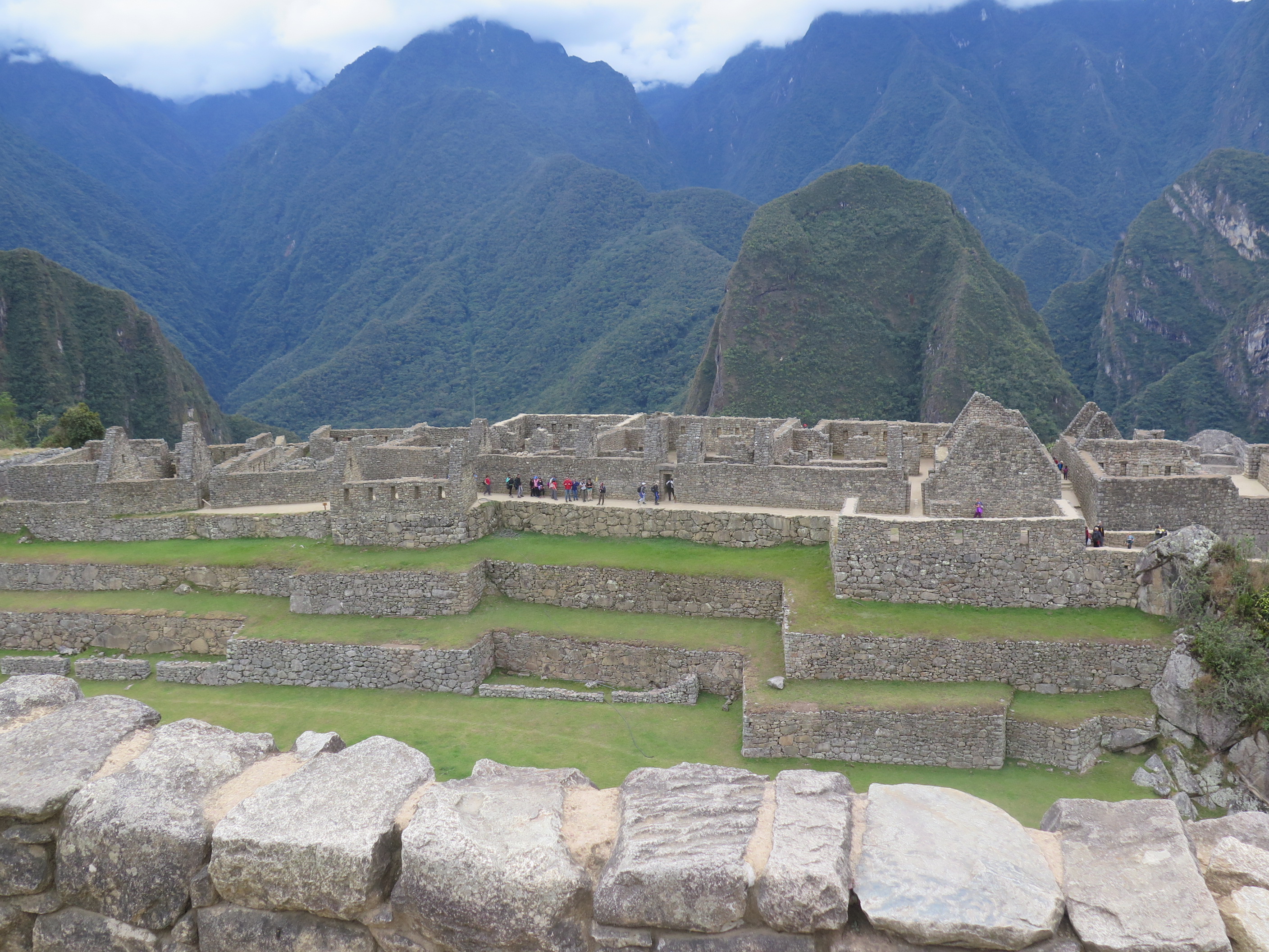 A las 8:30 empezamos la visita guiada. Las explicaciones de David fueron estupendas y muy completas, pero al sentarme para la primera de ellas me dio tal ataque de cansancio que me quedé dormido apoyado en una pared, y no fui el único. Las piernas, acostumbradas a estar en movimiento continuo desde hacía días, se me quedaron tiesas como palos. Cuando nos volvimos a poner de pie para seguir con la visita espabilé e hice unos estiramientos que me ayudaron. De todas las cosas que nos contaron, la que más me sorprendió fue que los incas se establecieron primero en Huayna Picchu. Construyeron un observatorio en la cumbre para así tener perspectiva y poder planificar la construcción de Machu Picchu.