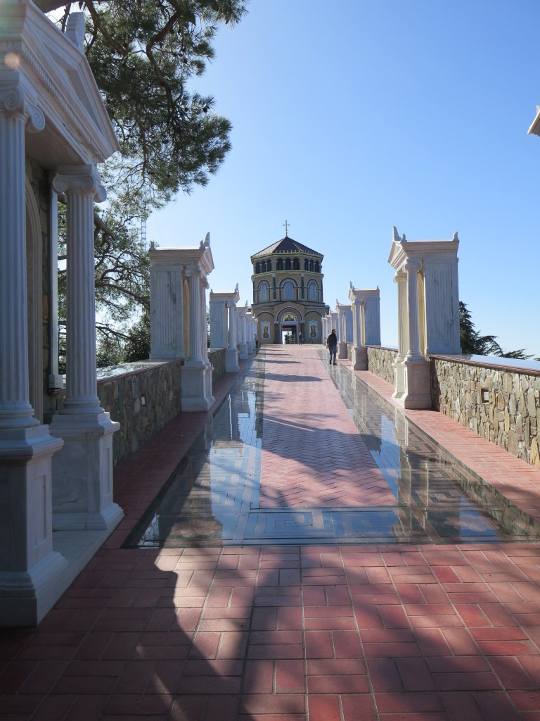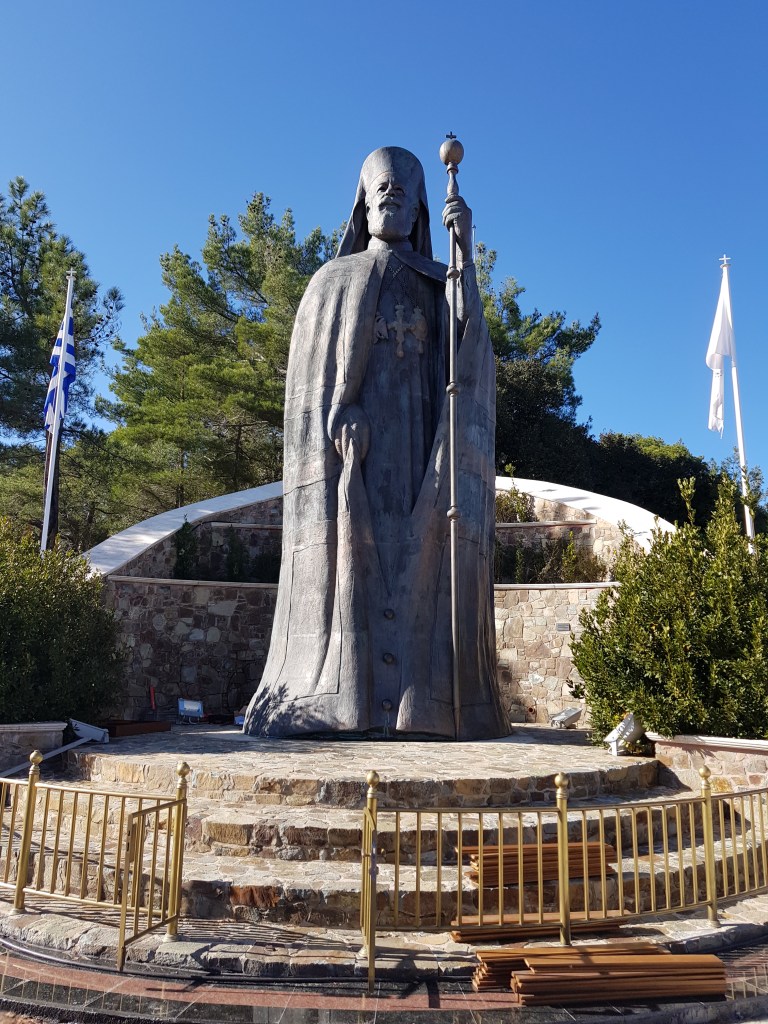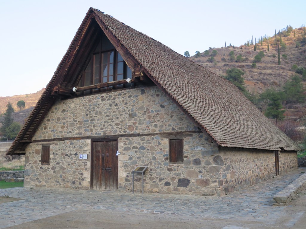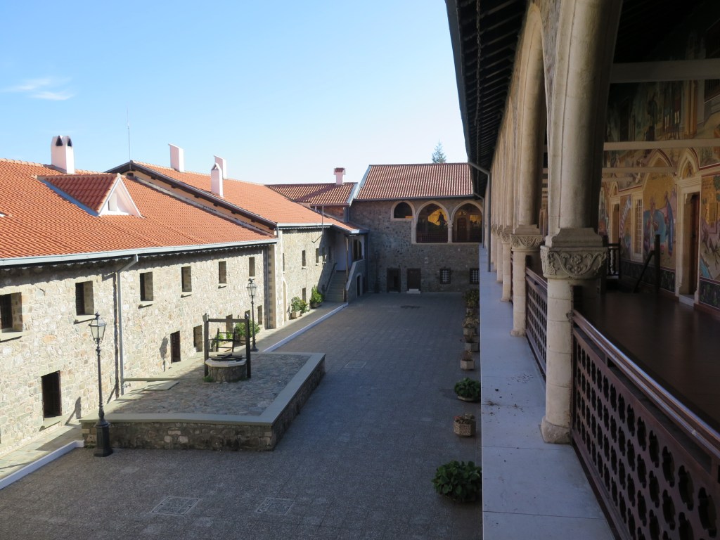 La primera parada fue en el Monasterio de Kikkos (no es uno de los de la lista PdH), a unos 74Km de Pafos, de los que los primeros 40 son por autopista y después se pasa a una carretera de montaña en muy buen estado pero muy virada (1h30’ en total). Fundado a finales del siglo XI, ha sido destruido y reconstruido numerosas veces, el edificio actual es bastante reciente y todo tiene aspecto de ser nuevo, especialmente los frescos. La entrada y la visita son libres y abre durante las horas de luz solar. Es un lugar bonito y luminoso en un entorno ideal, pero con 20 minutos da para verlo bien. Junto al monasterio, en lo alto de una colina, está el mausoleo del arzobispo y presidente Makarios III, considerado el Padre de la Patria por los greco-chipriotas. Hay una estatua suya y una pequeña capilla, pero lo mejor sin duda son las vistas de las montañas y bosques de los alrededores.