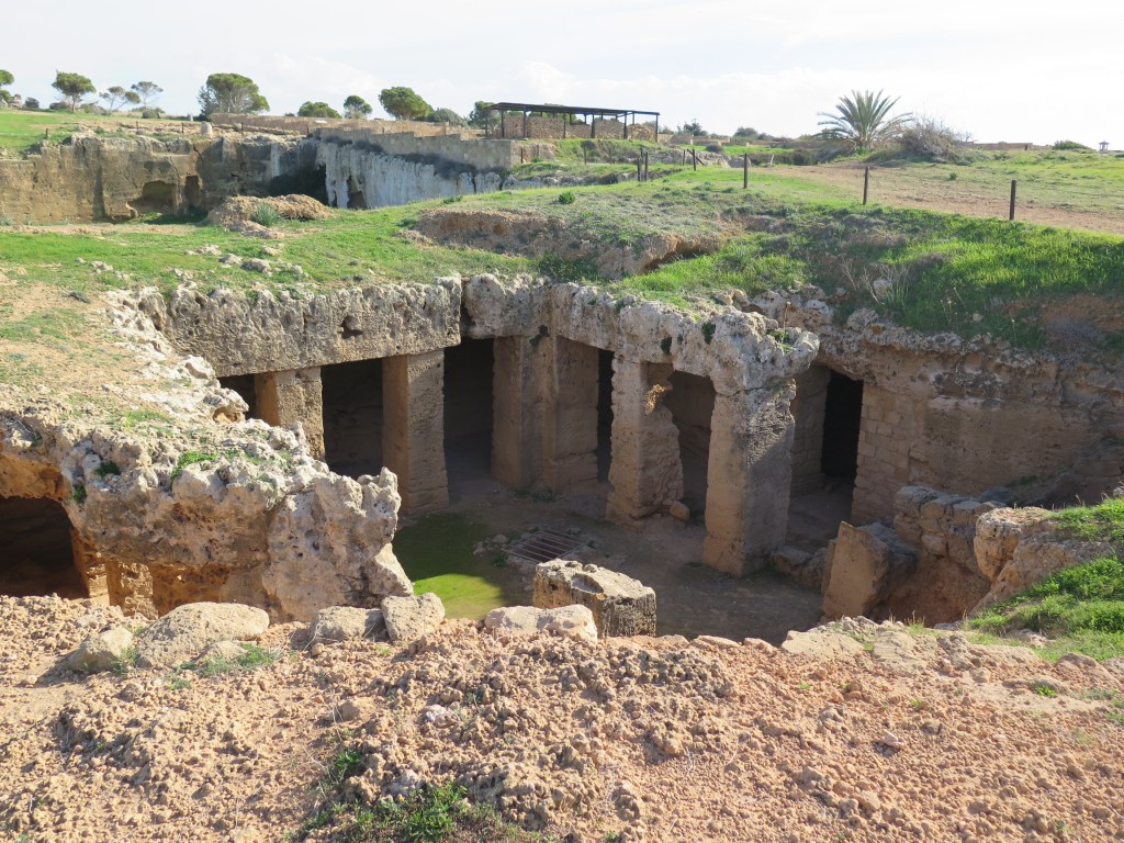 Es una extensa necrópolis situada un par de kilómetros al norte de Pafos. Las tumbas son subterráneas y están excavadas directamente en la roca, y la mayoría datan del siglo IV a.C. A pesar del nombre que recibe el lugar (debido a la espectacularidad de las tumbas), era un lugar de enterramiento para nobles y altos cargos de Pafos, no para reyes u otros miembros de la realeza. Las tumbas más cercanas a la entrada son más simples, pero de la 3 a la 8 son magníficas. Desde Pafos se tarda una media hora andando o apenas unos minutos en coche o taxi. La entrada cuesta 2.5€ y lleva unos 45-60 minutos verlo todo con tranquilidad.