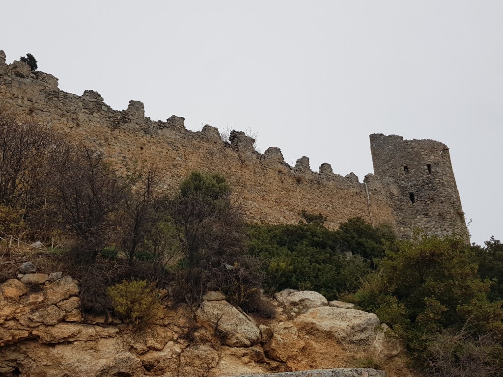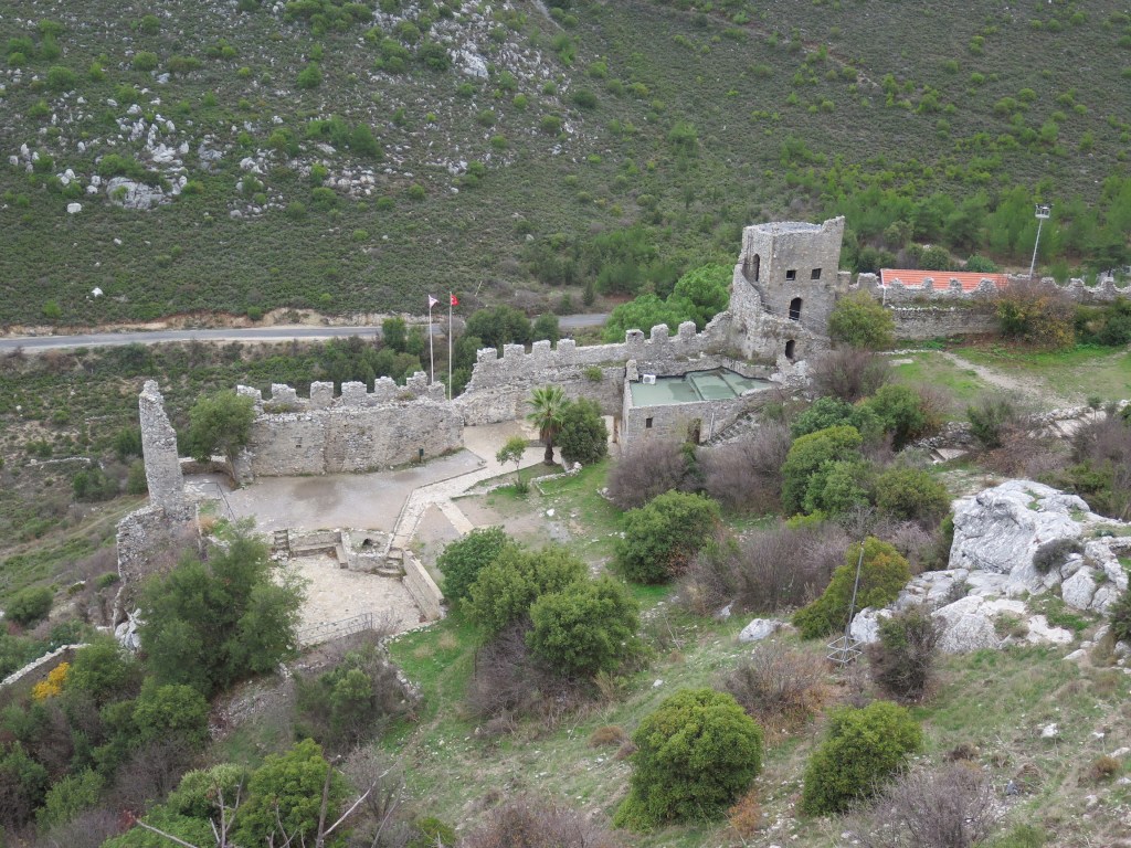 Situado a 630 metros de altitud en una colina junto a la costa norte de la isla, fue construido durante la época bizantina como torre vigía para alertar de las incursiones de piratas y tropas árabes. Las ruinas no se encuentran en especial buen estado de conservación, pero quedan suficientes restos de los muros principales y un par de torreones como para que resulten atractivas. A cambio, el paisaje de los alrededores es muy bonito y las vistas espectaculares, por lo que merece la pena desviarse y visitarlo. La entrada cuesta 2€, el aparcamiento es gratuito y las indicaciones para encontrarlo son fáciles de seguir.