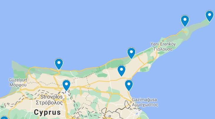 La parte norte-noreste de la isla es conocida oficialmente como República Turca del Norte de Chipre o, de manera abreviada, como Chipre del Norte. Es un estado de facto pero solo reconocido internacionalmente por Turquía, su país matriz. En 1974 se produjo un golpe de estado que tenía como objetivo anexionar Chipre (que había conseguido su independencia de Gran Bretaña apenas 14 años antes) a Grecia. Esto provocó la invasión del norte de la isla por el ejército de Turquía “para garantizar la seguridad y salvaguardar los intereses de los ciudadanos grecochipriotas”, empezando una cruenta guerra civil que acabó con un enorme intercambio de población y la isla dividida en dos, tal y como se encuentra hoy en día. La parte turca ocupa un 36% de la isla aproximadamente, y además hay una zona desmilitarizada llamada Línea Verde que ocupa un 4% del territorio de la isla y que está bajo control de la Naciones Unidas, separándola de la parte griega. Existe frontera propiamente dicha entre ambas partes de la isla y hace falta el pasaporte para cruzar de una a otra. Además, la moneda oficial en el norte es la lira turca, aunque aceptan euros en prácticamente todos los sitios. Personalmente, la parte turca me pareció más bonita e interesante que la griega, por lo que recomiendo reservar algo de tiempo para explorarla y, si es posible, hacer al menos una noche allí. Existen varios puntos en los que cruzar la frontera. Yo la crucé con el coche por dos sitios: el puesto fronterizo cercano a Lárnaca y también por el que se encuentra en medio de Nicosia. De la parte chipriota te dejan salir sin problemas. En la parte turca te controlan los pasaportes y los papeles del coche, asegurándose que tienes un seguro específico que sea válido en el norte. En caso de que no lo tengas lo puedes sacar en una pequeña oficina que hay junto a la frontera. En ambos cruces de frontera apenas había coches y no tardamos ni cinco minutos al ser temporada (muy) baja, pero lo normal es que haya cierta cola, incluyendo esperas de hasta una hora en épocas de mucho turismo.