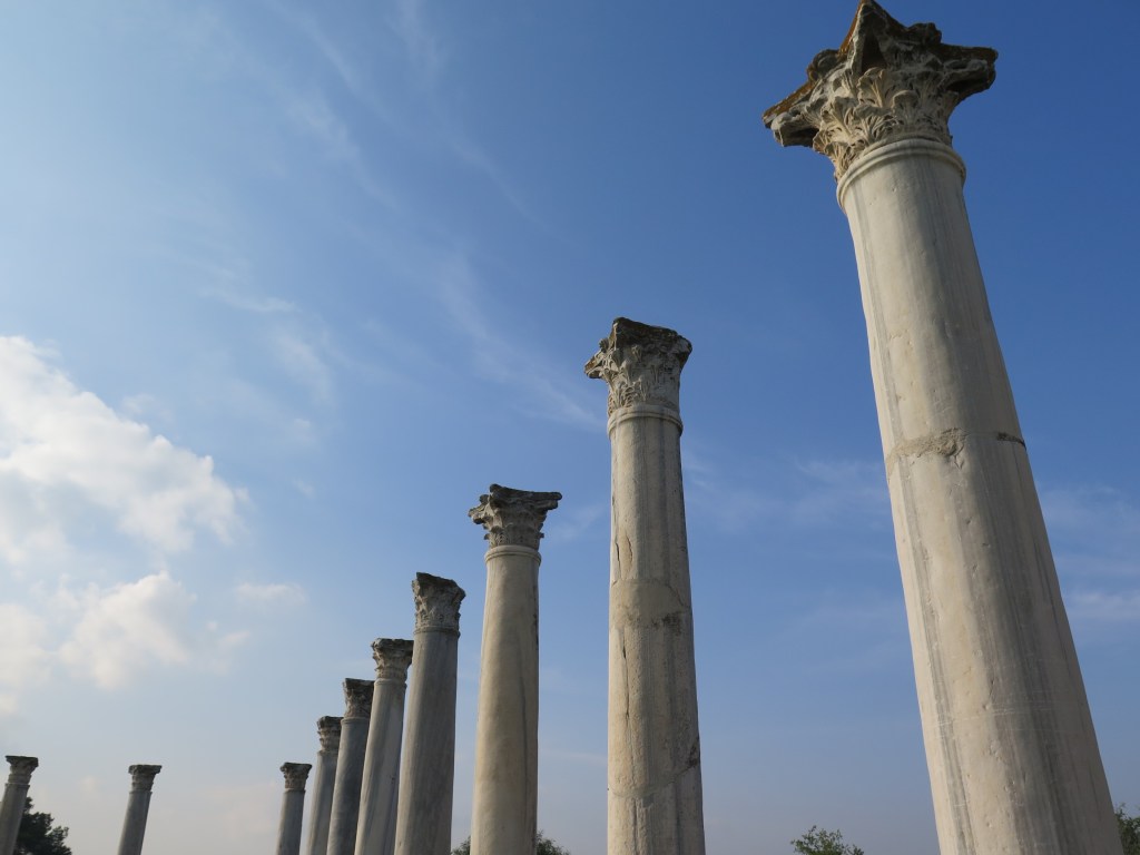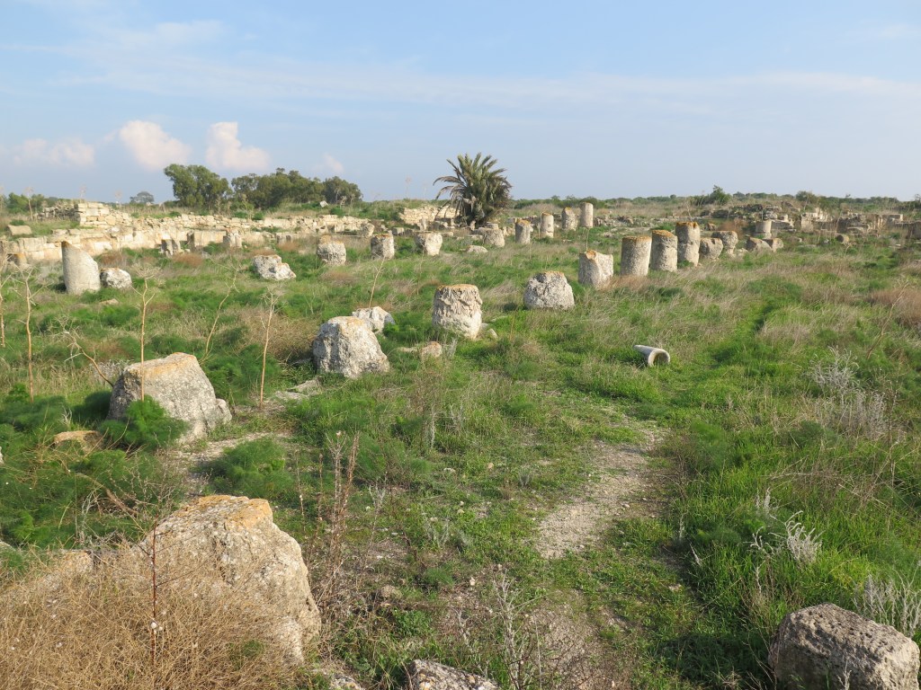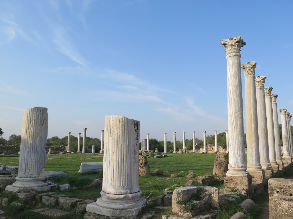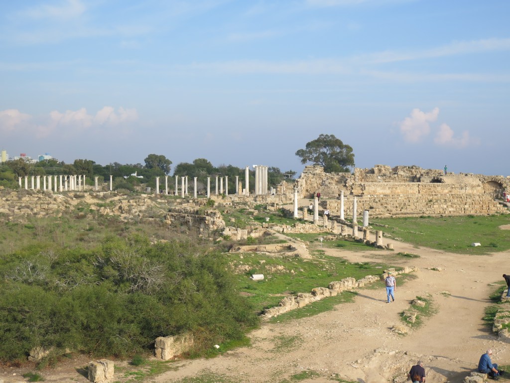 Las magníficas ruinas de la antigua ciudad-estado de Salamis (Salamina en español) están a la afueras de Famagusta, a algo menos de una hora desde el punto fronterizo más cercano a Lárnaca. Por extensión, conservación y calidad son, de largo, el mejor yacimiento arqueológico de todo Chipre y una visita imprescindible. La mayoría de los restos son de la época romana, entre los que destacan el imponente gimnasio con palestra anexa, el teatro (bastante reconstruido), el foro y la basílica de San Epifanio. A medida que te alejas de la zona cercana a la entrada, que contiene la parte principal y más espectacular del yacimiento, te encuentras más partes por excavar, con restos esparcidos de cualquier manera por el suelo y ruinas cubiertas por la tierra y la maleza. Hay zonas, como el templo de Zeus, que es como caminar por un campo salpicado de restos de columnas y bloques de mármol. El yacimiento es bastante extenso (hay que caminar unos 7km para verlo entero). Hace bastante calor incluso en diciembre y, en general, no hay donde guarecerse, por lo que conviene llevar agua, protección solar y algo para cubrirse la cabeza. La parte principal se ve en una hora, pero para recorrerolo a fondo hace falta como el doble de tiempo. Una sorpresa positiva es que tiene una playa dentro del recinto en la que te puedes bañar, al estilo de las ruinas de Tulum, que seguro que en verano se agradece muchísimo, así que compensa llevar el bañador a mano.